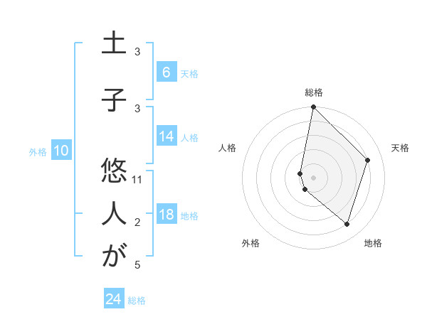 土子 悠人がさんの総格は24画の5点!