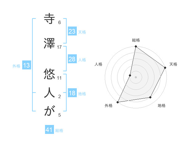 寺澤 悠人がさんの外格は13画の5点!