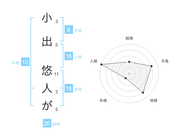 小出 悠人がさんを姓名の画数から五運を鑑定