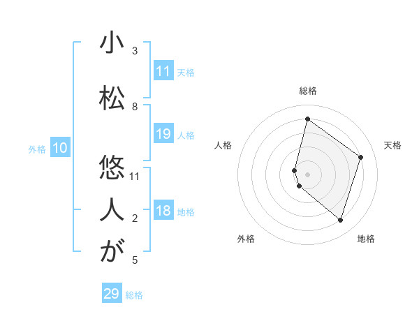 小松 悠人がさんを姓名の画数から五運を鑑定