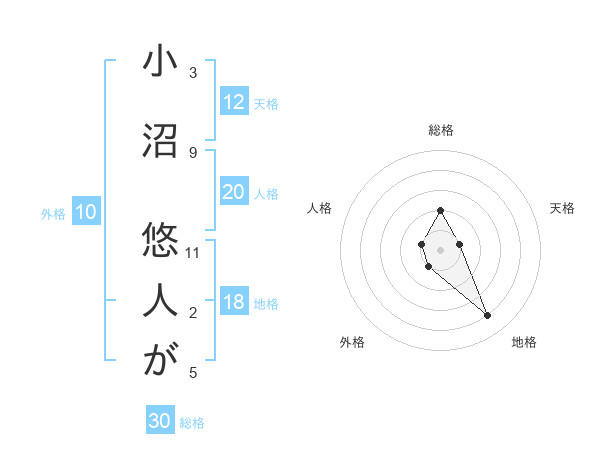 小沼 悠人がさんの天格は12画の1点!