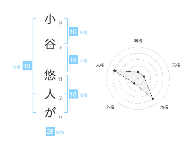 小谷 悠人がさんを姓名の画数から五運を鑑定