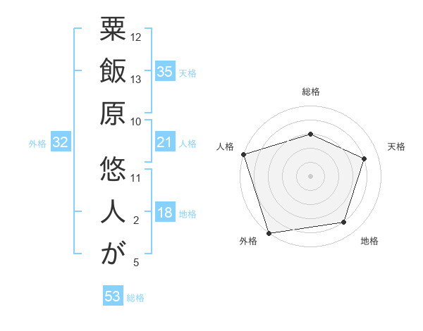 粟飯原 悠人がさんの総格は53画の3点!