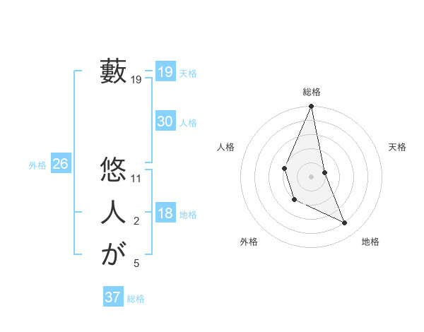 藪 悠人がさんを姓名の画数から五運を鑑定
