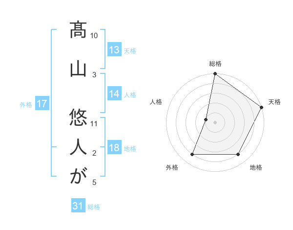 髙山 悠人がさんを姓名の画数から五運を鑑定