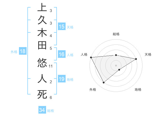 上久木田 悠人死さんの外格は18画の4点!