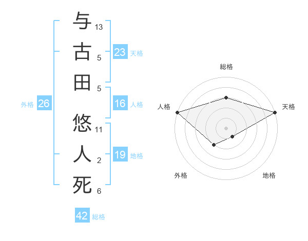 与古田 悠人死さんの天格は23画の5点!