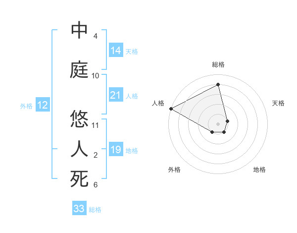 中庭 悠人死さんの人格は21画の5点!