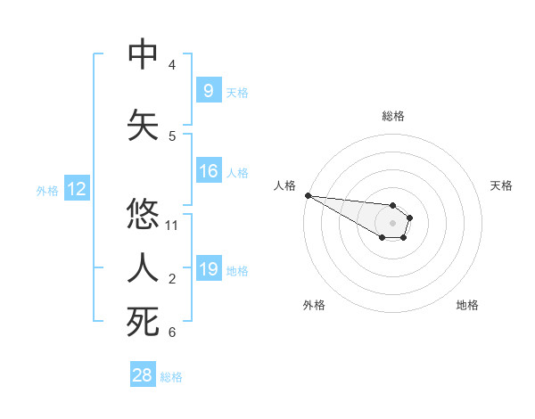 中矢 悠人死さんの総格は28画の1点!