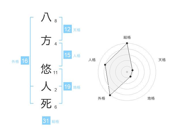 八方 悠人死さんの総格は31画の5点!