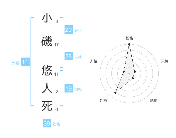 小磯 悠人死さんを姓名の画数から五運を鑑定