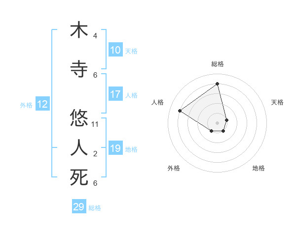 木寺 悠人死さんを姓名の画数から五運を鑑定