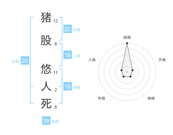 猪股 悠人死さんを姓名の画数から五運を鑑定