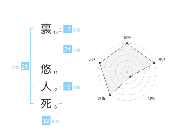 裏 悠人死さんを姓名の画数から五運を鑑定