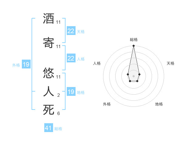 酒寄 悠人死さんを姓名の画数から五運を鑑定