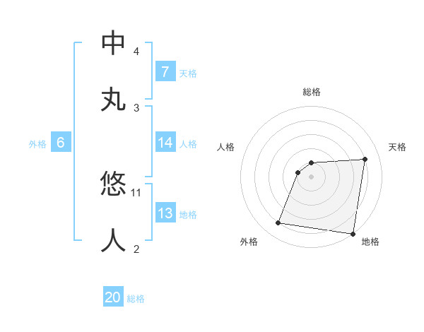 中丸 悠人さんを姓名の画数から五運を鑑定