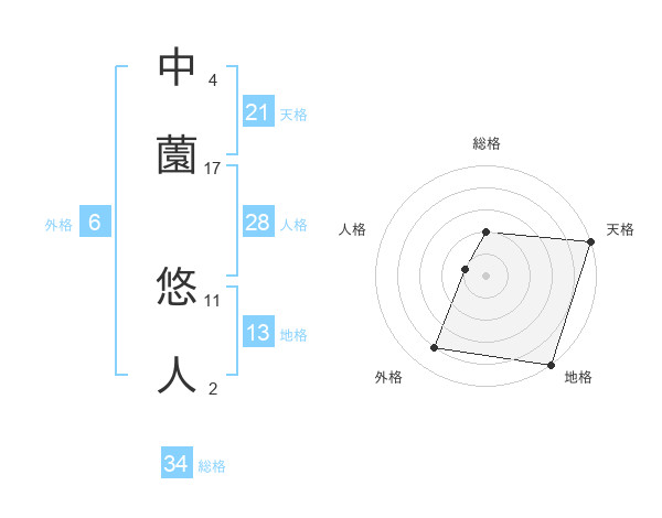 中薗 悠人さんの総格は34画の2点!
