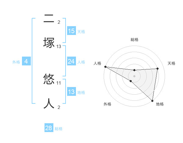 二塚 悠人さんの天格は15画の4点!