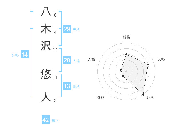 八木沢 悠人さんの総格は42画の3点!