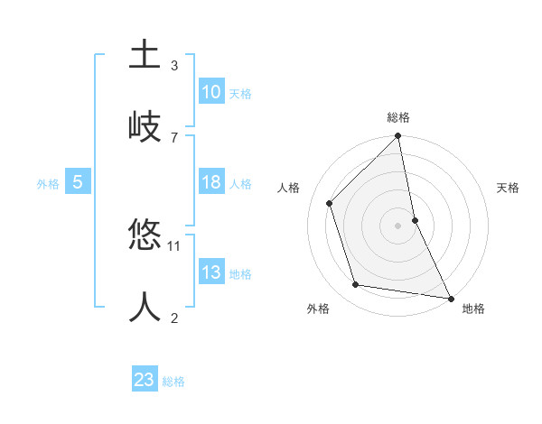 土岐 悠人さんの総格は23画の5点!