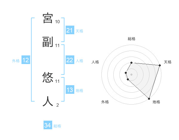 宮副 悠人さんの天格は21画の5点!
