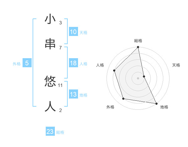 小串 悠人さんの総格は23画の5点!