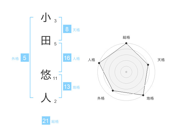 小田 悠人さんの総格は21画の5点!