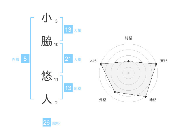 小脇 悠人さんを姓名の画数から五運を鑑定