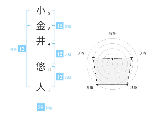 小金井 悠人さんの外格は13画の5点!