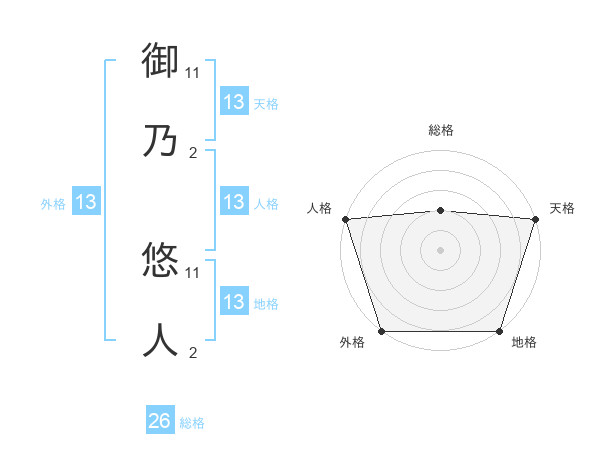 御乃 悠人さんを姓名の画数から五運を鑑定