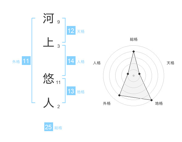 河上 悠人さんの総格は25画の4点!