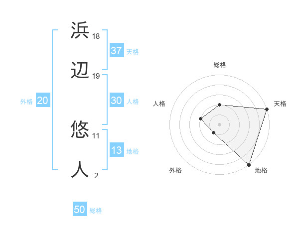 浜辺 悠人さんの総格は50画の2点!