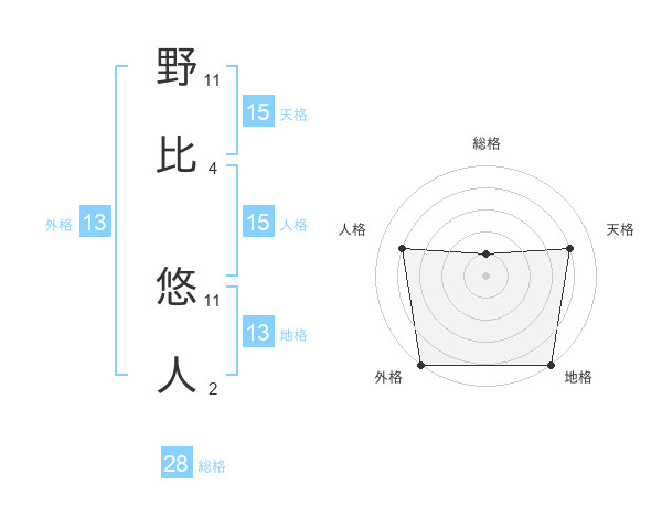 野比 悠人さんの総格は28画の1点!