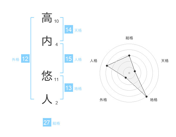 高内 悠人さんの総格は27画の3点!
