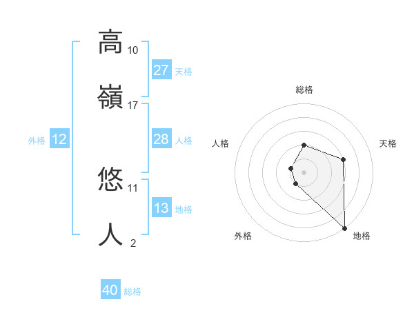 高嶺 悠人さんの天格は27画の3点!