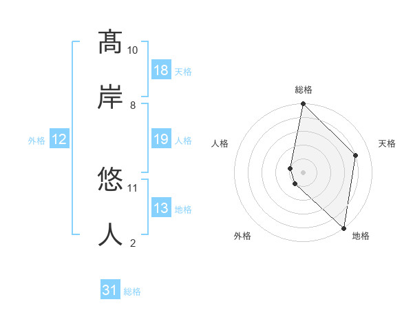 髙岸 悠人さんの総格は31画の5点!