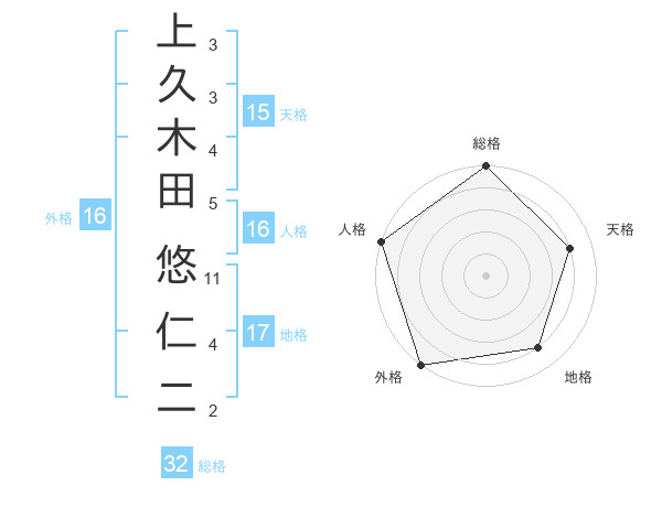 上久木田 悠仁二さんを姓名の画数から五運を鑑定
