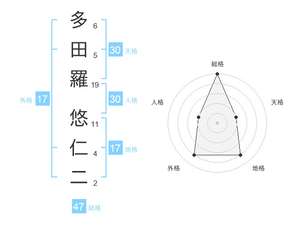 多田羅 悠仁二さんの総格は47画の5点!