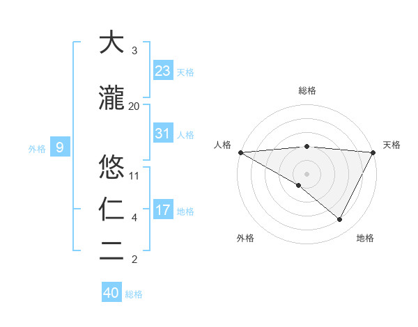 大瀧 悠仁二さんを姓名の画数から五運を鑑定