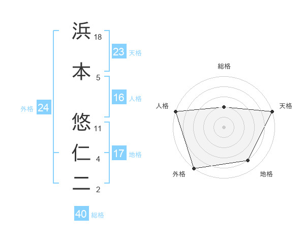 浜本 悠仁二さんを姓名の画数から五運を鑑定