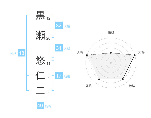 黒瀬 悠仁二さんを姓名の画数から五運を鑑定