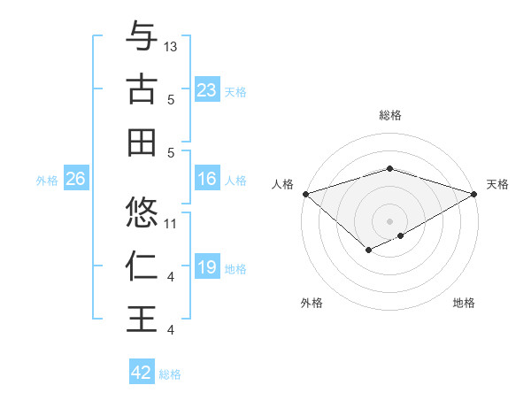 与古田 悠仁王さんを姓名の画数から五運を鑑定