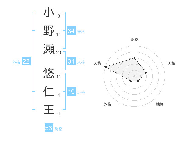 小野瀬 悠仁王さんを姓名の画数から五運を鑑定