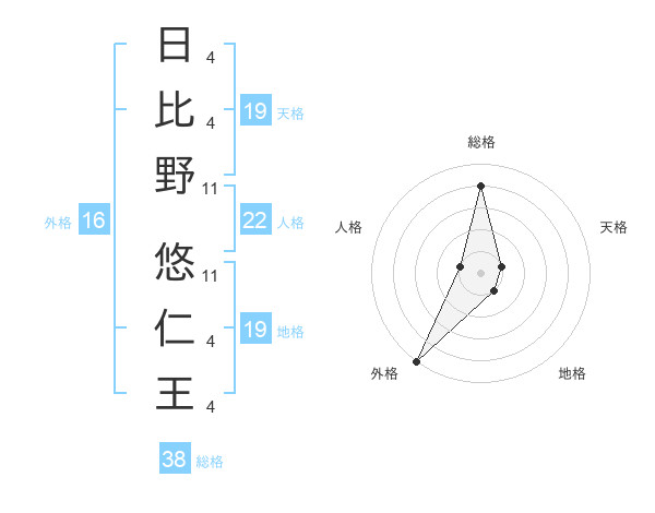 日比野 悠仁王さんを姓名の画数から五運を鑑定