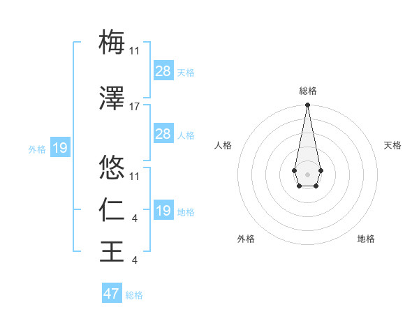 梅澤 悠仁王さんを姓名の画数から五運を鑑定