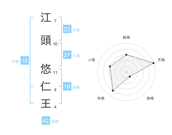 江頭 悠仁王さんを姓名の画数から五運を鑑定