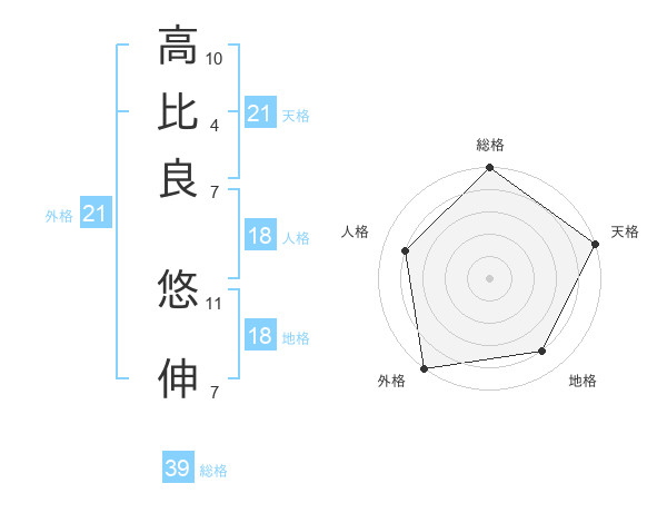 高比良 悠伸さんの天格は21画の5点!