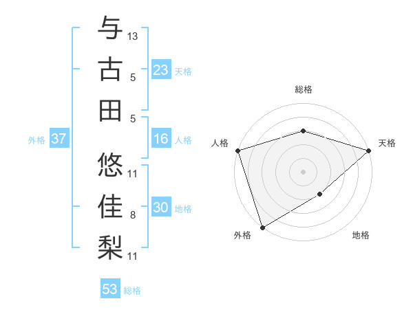 与古田 悠佳梨さんを姓名の画数から五運を鑑定