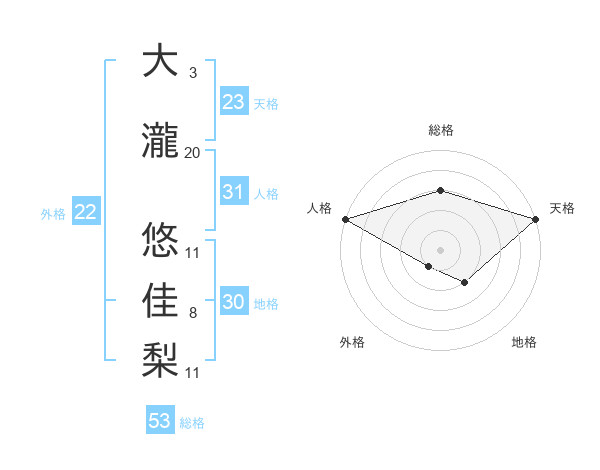 大瀧 悠佳梨さんを姓名の画数から五運を鑑定