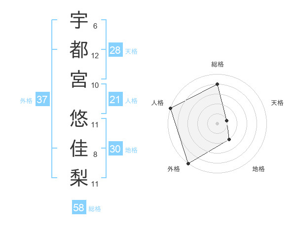 宇都宮 悠佳梨さんの外格は37画の5点!